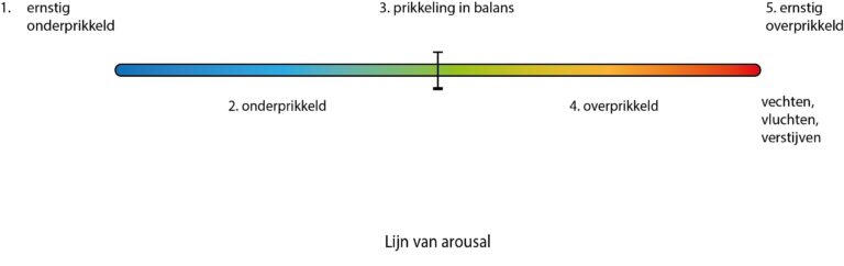 arousallijn, blauw, groen, oranje, rood, hypoarousal, hyperarousal